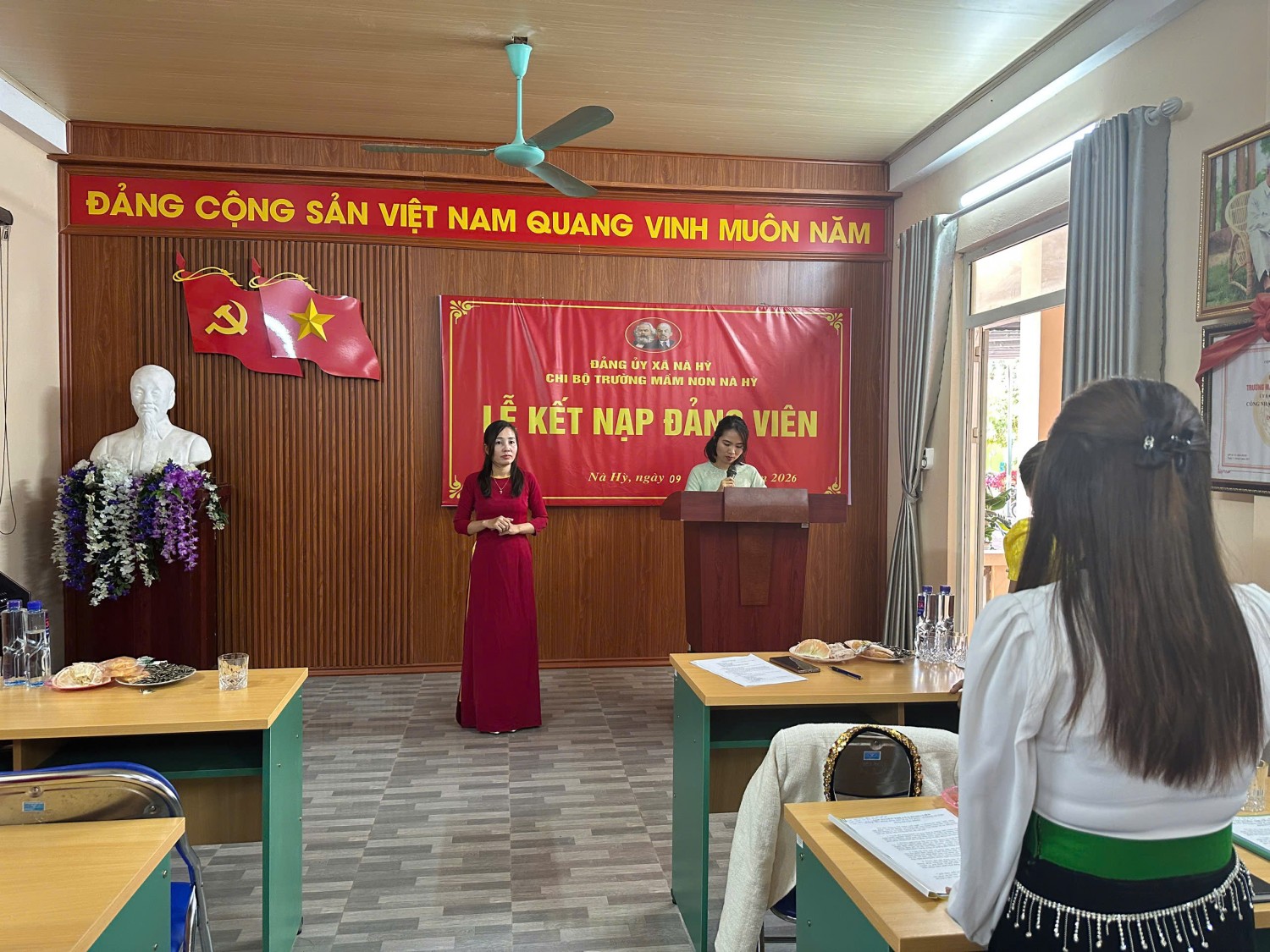Tại buổi Lễ, đồng chí Phạm Thu Trang – Phó bí thư chi bộ nhà trường chúc mừng đồng chí đảng viên mới Thùng Thị Điệp và Hà Thị Huệ, ghi nhận những cố gắng trong suốt thời gian qua của đồng chí, mong muốn đồng chí tiếp tục phát huy vai trò trách nhiệm trong việc tu dưỡng, rèn luyện, phấn đấu, học tập, nâng cao nhận thức chính trị và năng lực chuyên môn, góp phần xây dựng Chi bộ trong sạch, vững mạnh và thực hiện tốt nhiệm vụ của người đảng viên, đặc biệt là thực hiện tốt quy định về những điều Đảng viên không được làm. Đồng thời nhấn mạnh công tác phát triển đảng viên là nhiệm vụ thường xuyên và có ý nghĩa rất quan trọng của Chi bộ, góp phần phát triển, nâng cao năng lực lãnh đạo và sức chiến đấu của tổ chức cơ sở Đảng nói chung và của cá nhân đảng viên nói riêng. Đồng chí đề nghị các đảng viên Chi bộ tiếp tục phát huy tinh thần đoàn kết, giữ vững bản lĩnh chính trị, trách nhiệm, chủ động, sáng tạo, hoàn thành xuất sắc nhiệm vụ được giao.