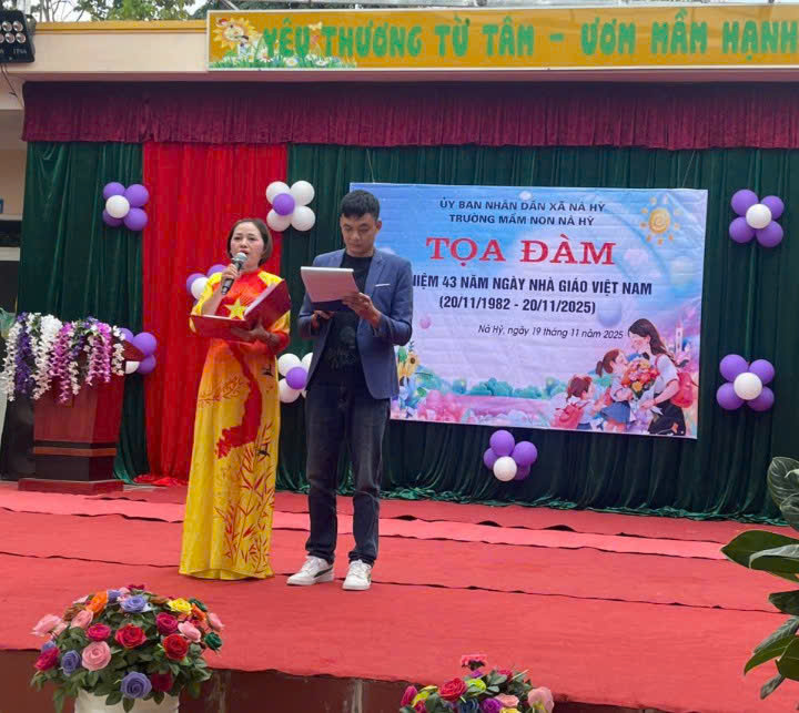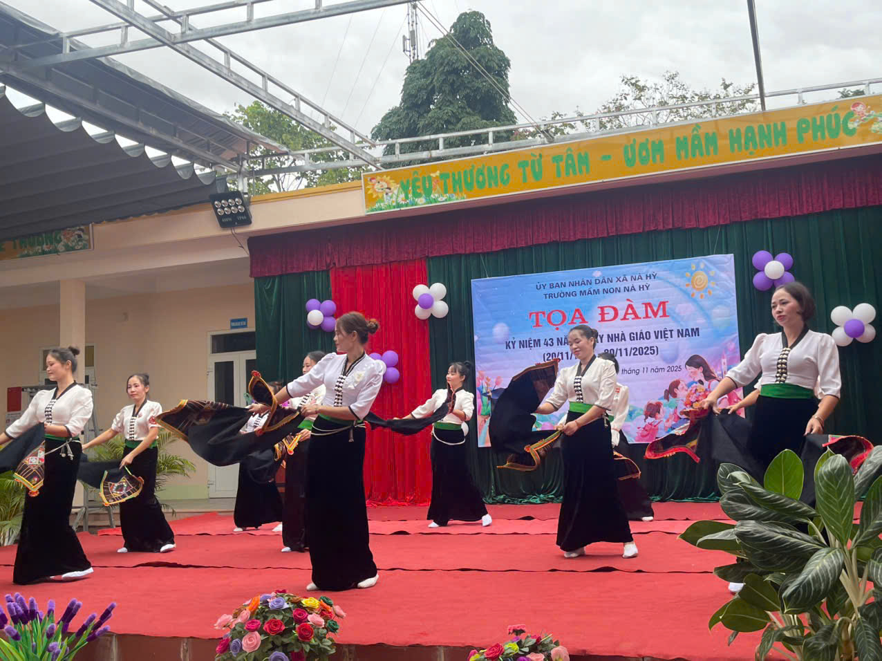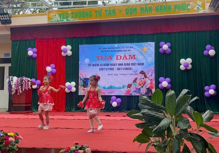 Ngày 19/11/2025 Trường mầm non Nà Hỳ tổ chức chương trình Tọa đàm kỉ niệm 43 năm ngày Nhà giáo Việt Nam 20/11/1982-20/11/2025 nhằm giúp các thế hệ nhà trường cùng ôn lại ngày lễ kỉ niệm và tri ân các thầy cô giáo, với không khí sôi nổi, hào hứng cùng các tiết mục của cô giáo và các bạn nhỏ trong nhà trường.